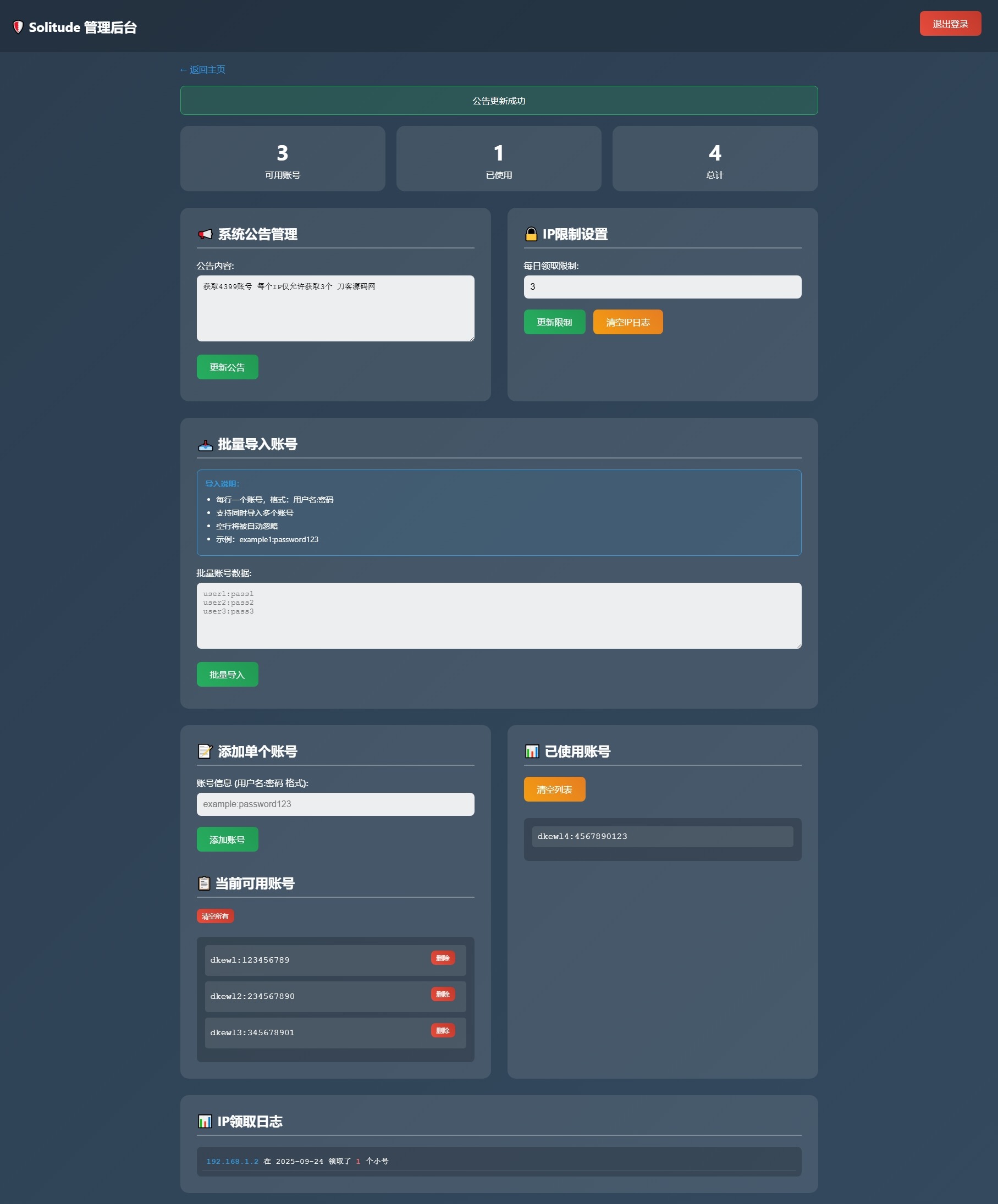 小号分发 卡密分发系统网站源码 轻量化千帆网赚2个月前更新关注010159小号分发 卡密分发系统网站源码 轻量化此内容为付费资源,请付费后查看柚币5.88黄金会员免费钻石会员免费立即购买您当前未登录!建议登陆后购买,可保存购买订单付费资源 简介: 小号分发 卡密分发系统网站源码 轻量化 此为小号分发卡密系统源码,专用于分发小号库存账号或卡密等使用,不过规定每个IP仅能领取3次,也可视作小号分发工具。 已做过简易测试,感兴趣者可自行部署使用! 图片: © 版权声明 文章版权声明 1、本网站名称:千帆网赚 2、本站永久网址:https://www.qfwz.net/ 3、本网站的文章部分内容可能来源于网络,仅供大家学习与参考,如有侵权,请联系站长jackma5210@outlook.com进行删除处理。 4、本站一切资源不代表本站立场,并不代表本站赞同其观点和对其真实性负责。 5、本站一律禁止以任何方式发布或转载任何违法的相关信息,访客发现请向站长举报 6、本站资源大多存储在云盘,如发现链接失效,请联系我们我们会第一时间更新。 THE END源码基地 喜欢就支持一下吧点赞59 分享QQ空间微博QQ好友海报分享复制链接收藏