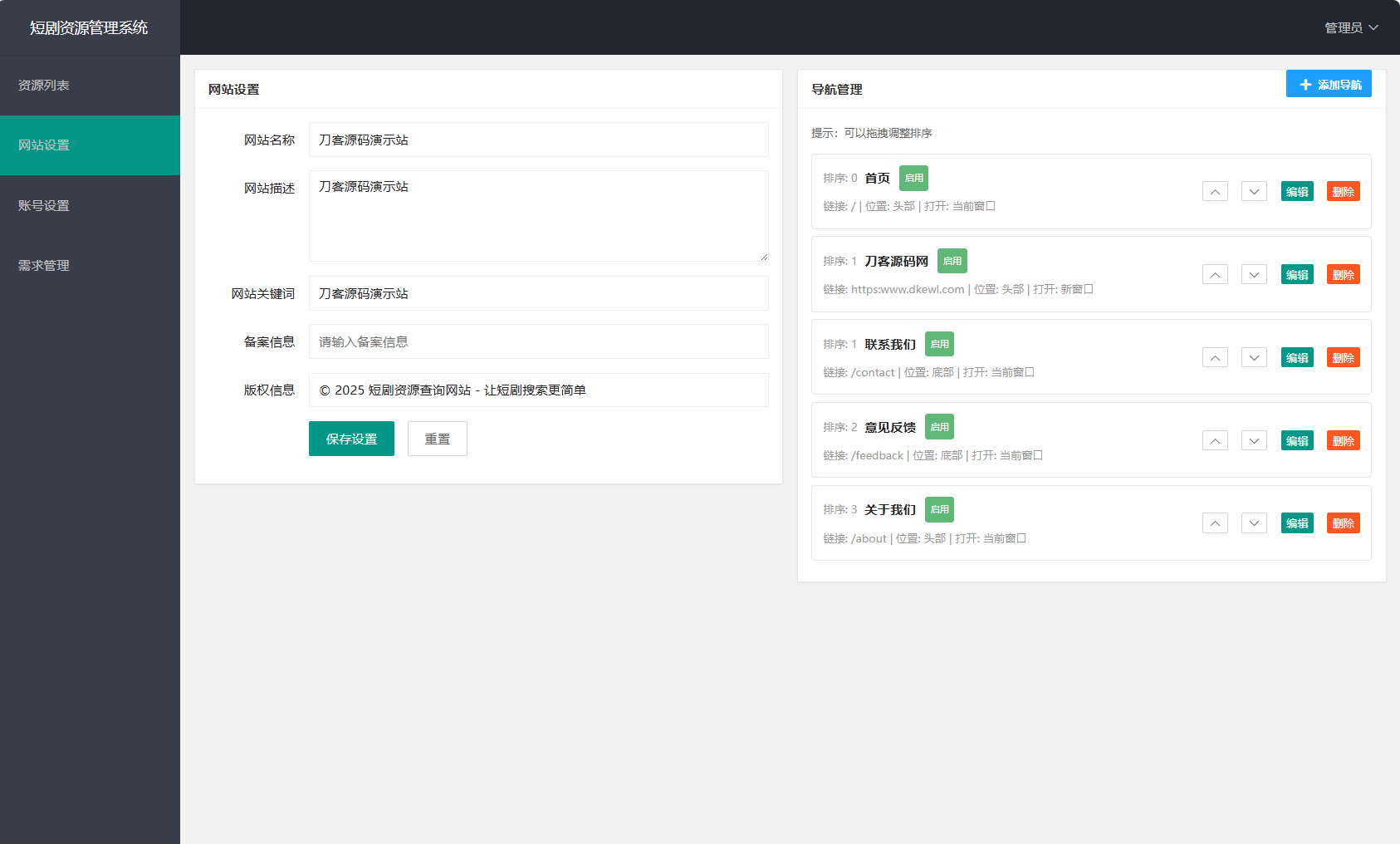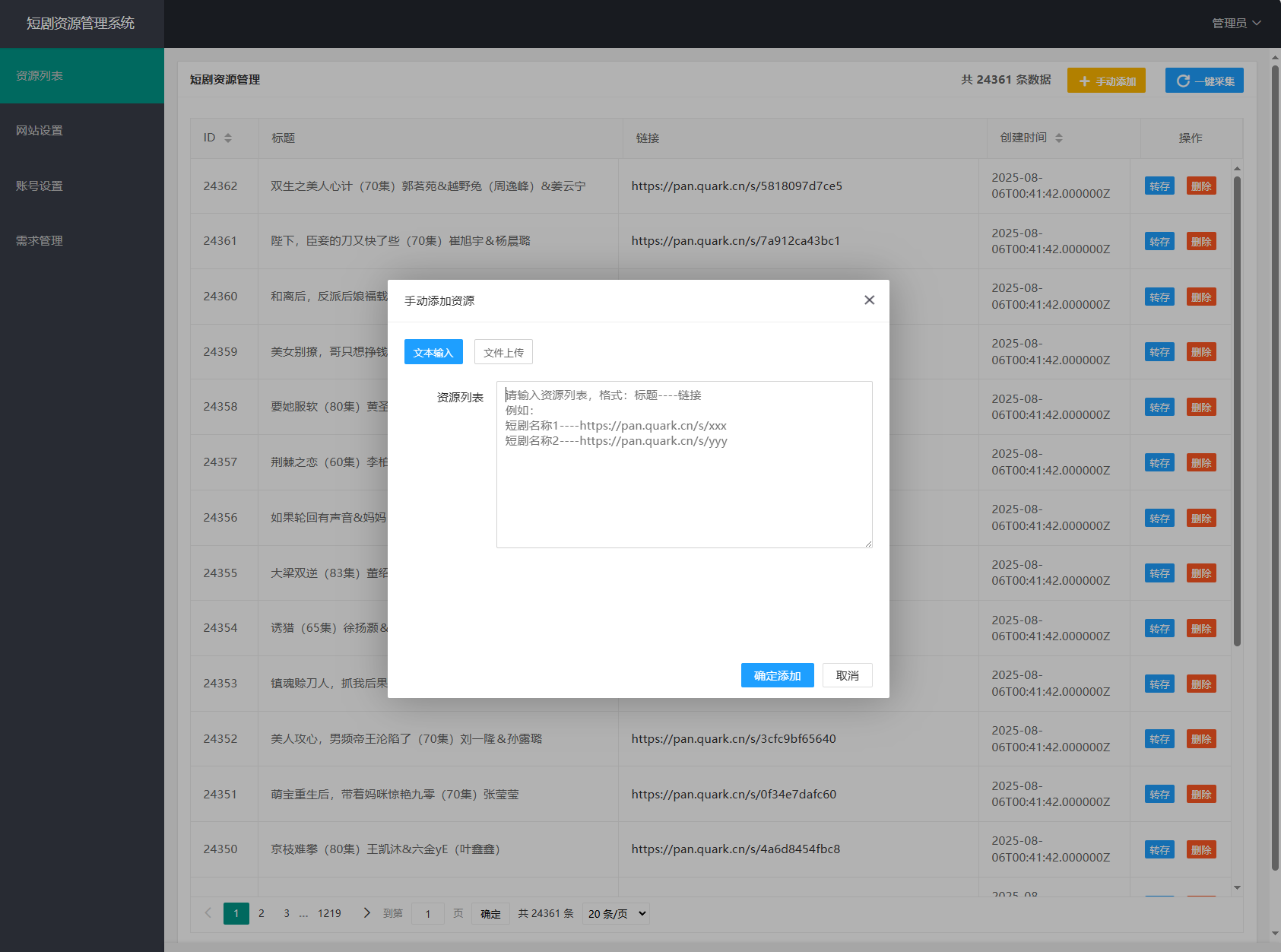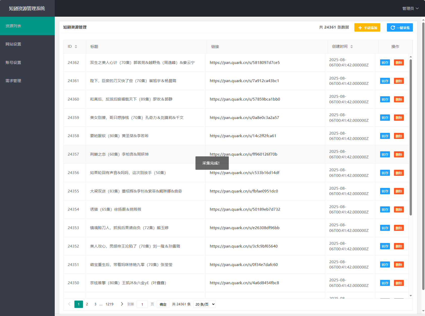 网盘短剧资源转存项目源码 支持夸克 带后台 附教程千帆网赚3个月前更新关注0791网盘短剧资源转存项目源码 支持夸克 带后台 附教程此内容为付费资源,请付费后查看柚币1.88黄金会员免费钻石会员免费立即购买您当前未登录!建议登陆后购买,可保存购买订单付费资源 简介: 网盘短剧资源转存项目源码 支持夸克 带后台 附教程 安装教程: 测试环境:Nginx + PHP7.4 + MySQL5.7 数据库信息配置文件:.env 网站运行目录设置为:public 图片: © 版权声明 文章版权声明 1、本网站名称:千帆网赚 2、本站永久网址:https://www.qfwz.net/ 3、本网站的文章部分内容可能来源于网络,仅供大家学习与参考,如有侵权,请联系站长jackma5210@outlook.com进行删除处理。 4、本站一切资源不代表本站立场,并不代表本站赞同其观点和对其真实性负责。 5、本站一律禁止以任何方式发布或转载任何违法的相关信息,访客发现请向站长举报 6、本站资源大多存储在云盘,如发现链接失效,请联系我们我们会第一时间更新。 THE END源码基地 喜欢就支持一下吧点赞1 分享QQ空间微博QQ好友海报分享复制链接收藏